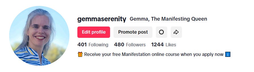 Connect with me on TikTok for daily LIVE interaction https://tiktok.com/@gemmaserenity “Gemma, The Manifesting Queen”